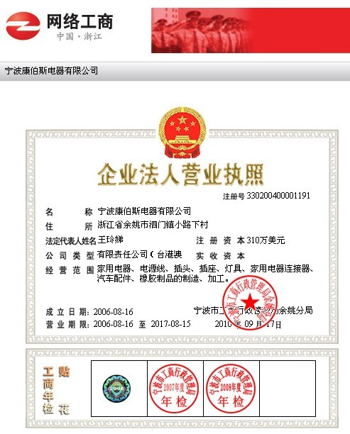 宁波康伯斯电器有限公司应浙江工商局要求开通企业法人营业执照网络标识监督,为促经网络经济的发展。并且防止一些不法分子,利用钓鱼网站等手段使一些客户蒙受损失。现我司申明,www.nbcompx.com为工商行政管理局指定宁波康伯斯电器有限公司官方网站。