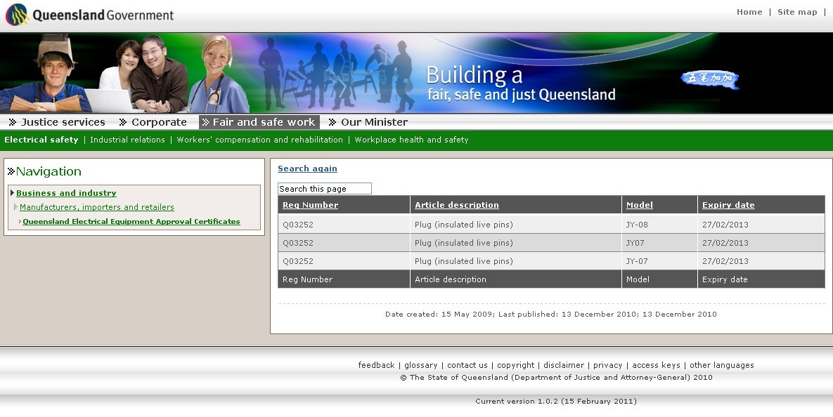 宁波康伯斯电器有限公司(余姚市精益电子有限公司)提供SAA认证查询: